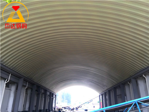 在倉間罩棚的應(yīng)用中,門式鋼結(jié)構(gòu)拱形屋頂有效利用空間,提高了倉儲效率,同時便于日常維護(hù)和檢修。其模塊化設(shè)計也為后期擴建和改造提供了便利。