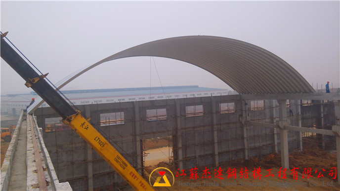 江蘇杰達鋼結構工程有限公司專注于大跨度拱形屋頂的施工,跨度范圍在25米至38米之間,致力于打造結構穩(wěn)固、設計合理的鋼結構屋頂,滿足不同建筑需求。