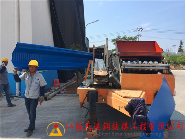施工周期安排合理,整個工期為31個工作日。施工人員于2016年9月1日進場,9月12日完成托板焊接,隨后于9月18日進行拱形屋頂彩板的出瓦作業。10月5日完成屋頂吊裝,接著安裝采光帶,并于10月9日順利竣工。
