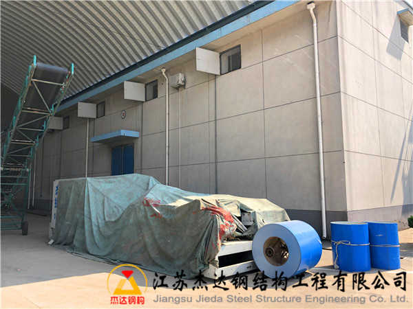 該項目位于江蘇省宿遷市第二糧食儲備庫,原有兩棟拱形屋頂倉間罩棚由湖南某企業(yè)建設(shè),拱高為跨度的四分之一,采用1.0毫米厚的鋼板。由于施工過程中存在偷工減料現(xiàn)象,導(dǎo)致建筑質(zhì)量不達標,屋頂壽命較短,且部分區(qū)域已被臺風(fēng)破壞,半棟屋頂垮塌。現(xiàn)由江蘇杰達鋼結(jié)構(gòu)工程有限公司負責(zé)翻建工作,采用臺灣尚興鋼鐵廠生產(chǎn)的TS280GD-Z彩涂卷,板厚提升至1.2毫米,以增強結(jié)構(gòu)的耐用性和穩(wěn)定性。