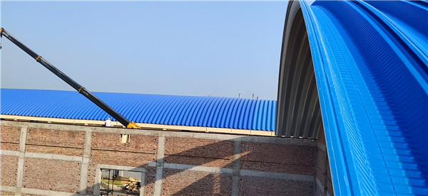 施工流程主要包括:首先派遣施工人員到現(xiàn)場(chǎng),在天溝內(nèi)側(cè)預(yù)埋預(yù)埋件,確保結(jié)構(gòu)基礎(chǔ)穩(wěn)固。隨后焊接5毫米厚度的托板,為屋頂提供承載支撐。最后安裝拱形屋頂,整個(gè)過(guò)程注重細(xì)節(jié),保證了工程質(zhì)量。