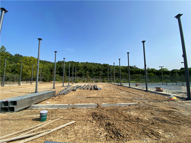 2017年8月20日,江蘇杰達鋼結(jié)構(gòu)工程有限公司的胡達洋經(jīng)理率領(lǐng)施工團隊,在南京財經(jīng)大學順利完成了風雨網(wǎng)球場的拱形屋頂施工工程。