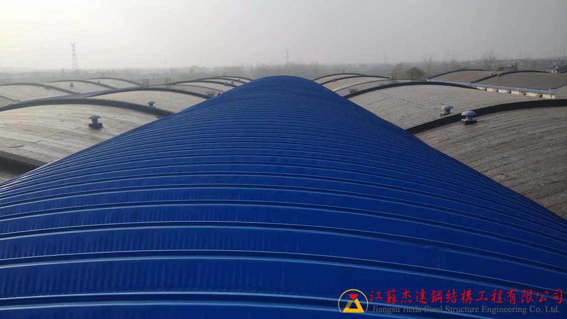 江蘇杰達鋼結構工程有限公司專注于金屬拱型屋面、無梁拱及鋼結構的設計、制作、安裝和加工。公司配備先進的計算機輔助設計軟件,產(chǎn)品具有跨度大、自重輕、工期短等優(yōu)點。其設計突出造型美觀、室內(nèi)空間開闊、不滲漏、耐震性能良好、使用壽命較長,特別適合倉庫、廠房、展廳、市場、體育館、鐵路站臺及建筑加層等多種場景。